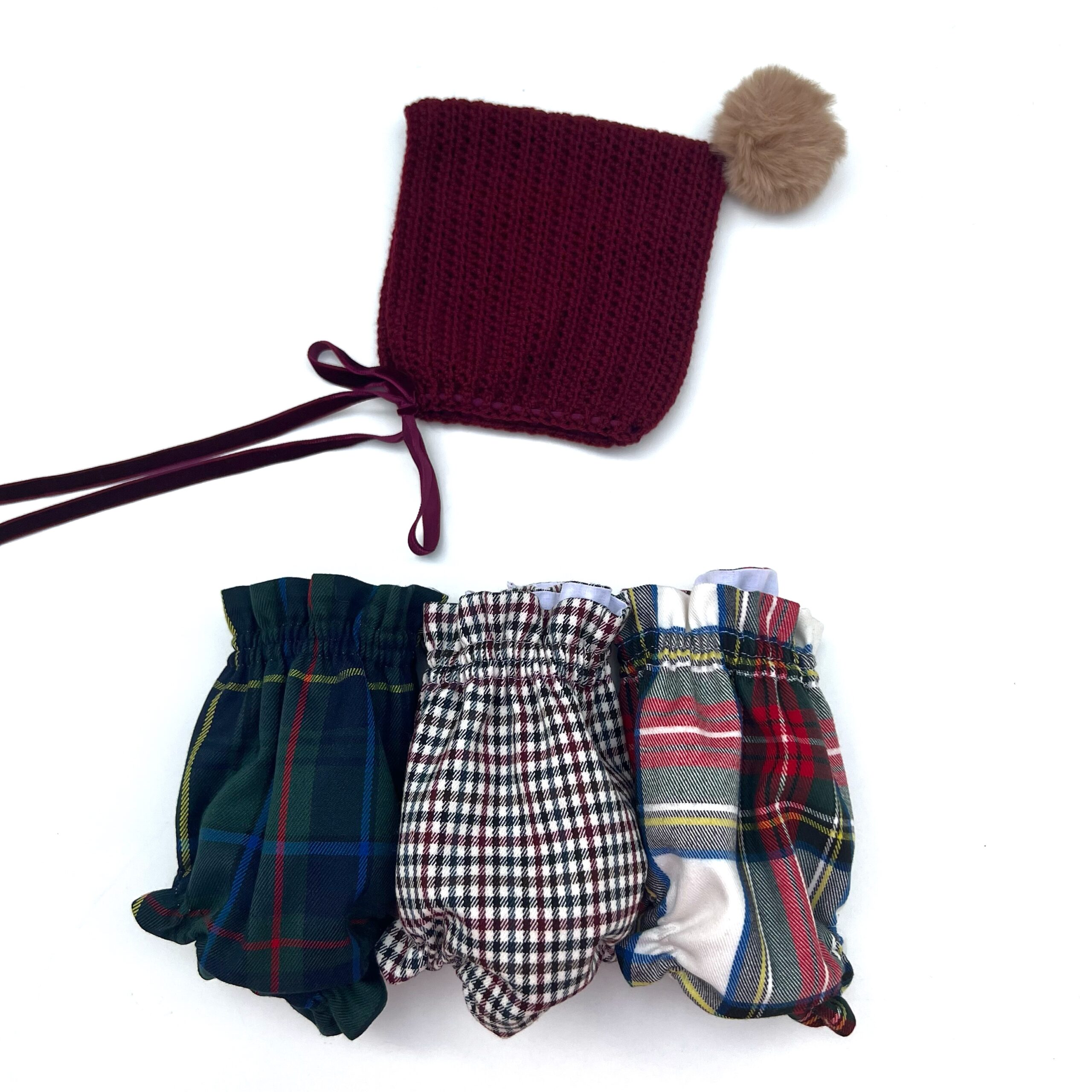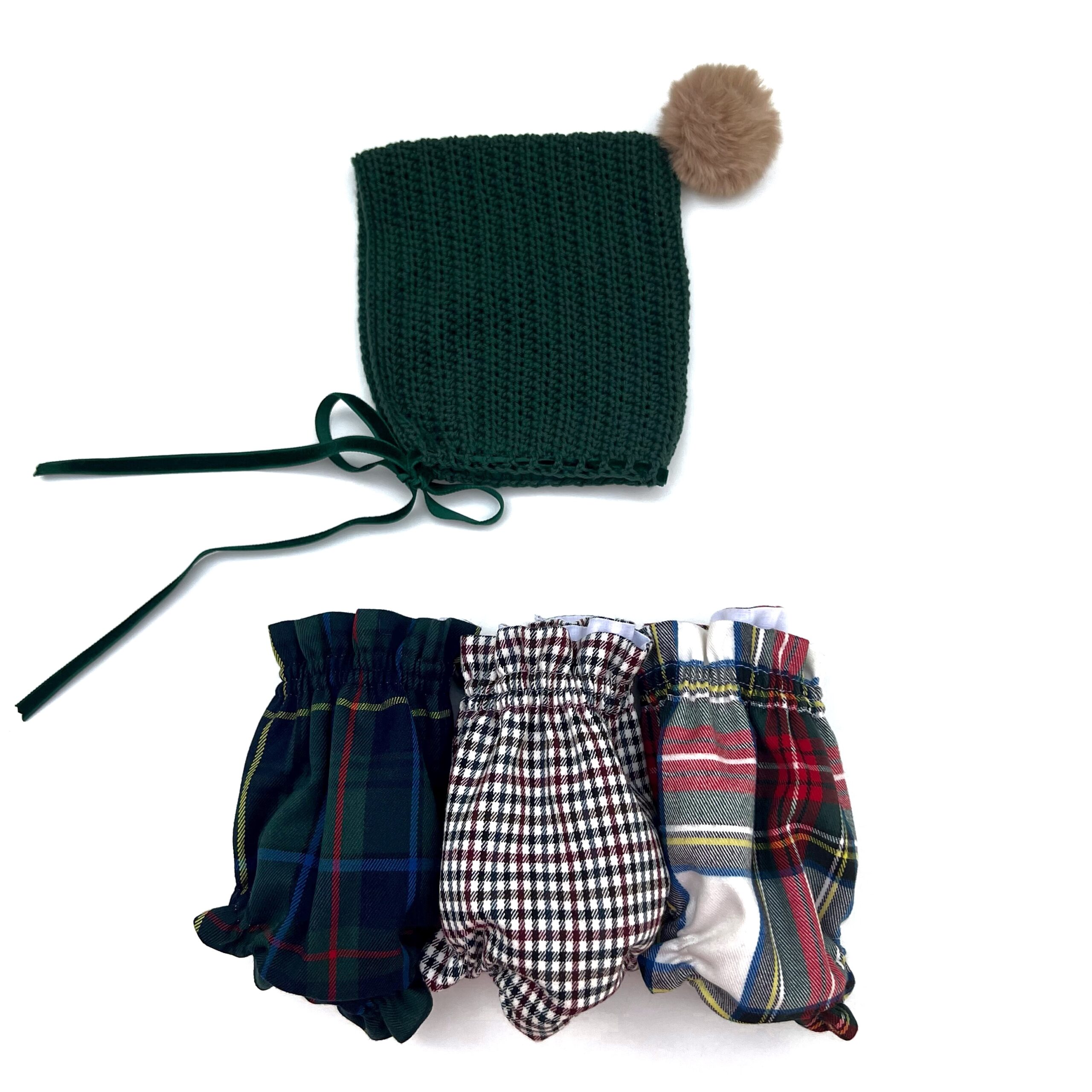 La pieza se realiza en lana o en algodón, adaptándose a la preferencia de cada conjunto. La confección manual sigue un patrón que se ajusta desde el borde delantero hasta la base del cuello, manteniendo la geometría cuadrada que define a los modelos gnomo. Al añadir el pompón en el remate superior, la prenda adquiere un volumen diferente que resalta la forma de pico propia de esta estructura.